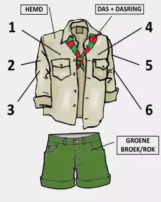 De scoutsdas krijg je van ons, maar hemd en scoutsbroek/rok koop je in de Hopper.