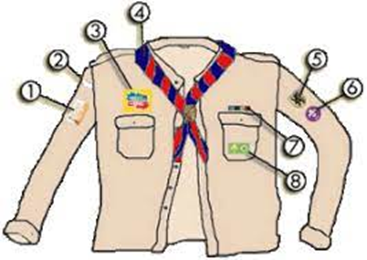 - Groepslintje van Scouts Zellik (vlak onder de naad van de rechtermouw): Dit lintje kan bij de leiding verkregen worden.